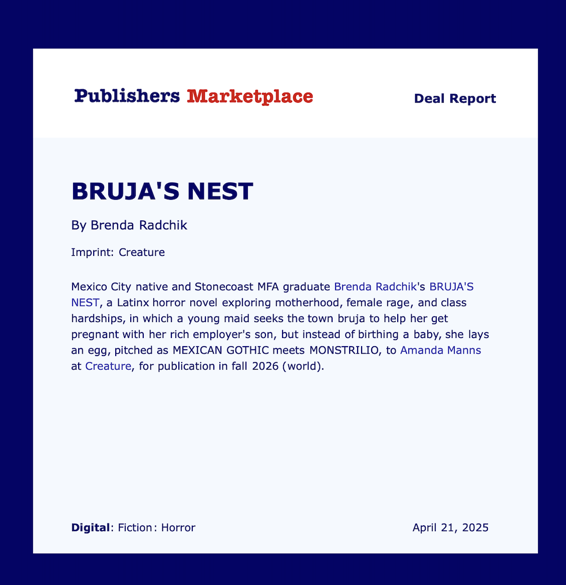 Debut Novel BRUJA’S NEST coming out in 2026!